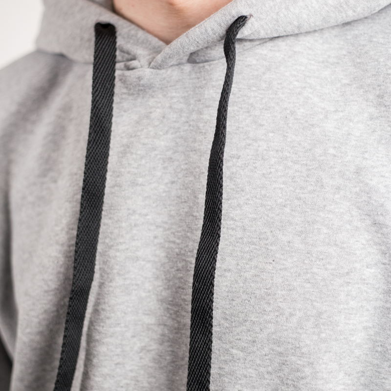 Толстовка с капюшоном. Подклад капюшона из кулирки отделочного цвета. Шнурок черного цвета.